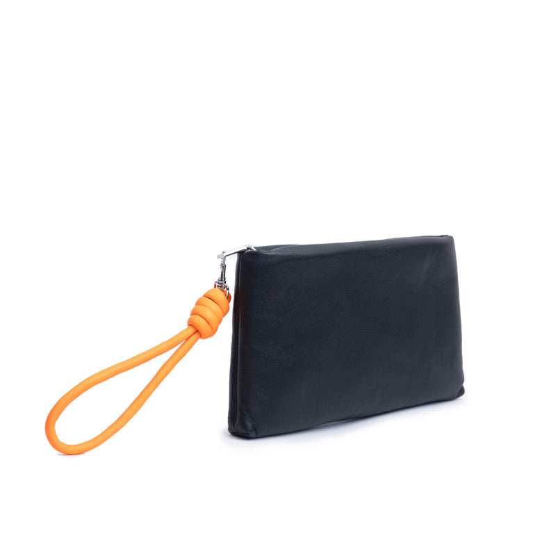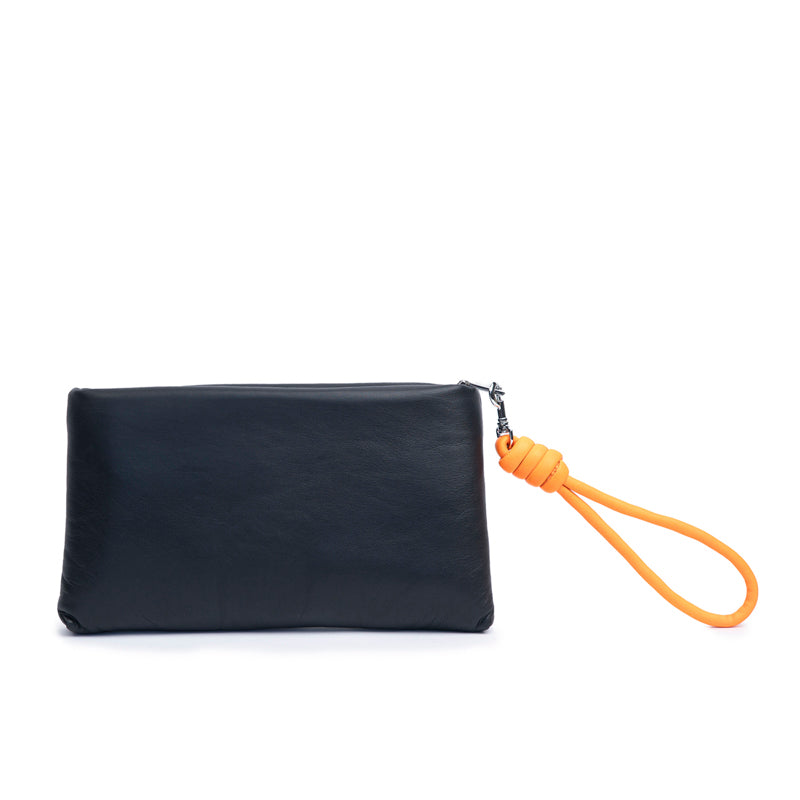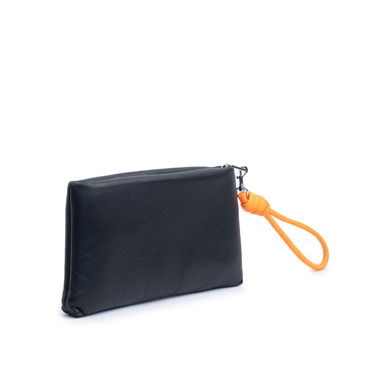 With just a touch of puff, a longer length to hold more essentials and a contrasting puffy wristlet so she never leaves your side.