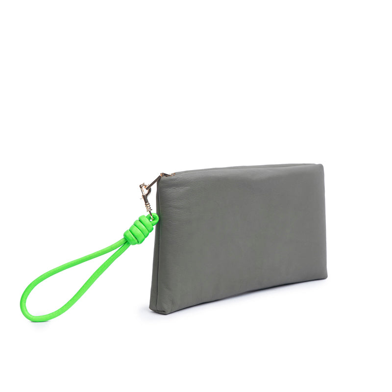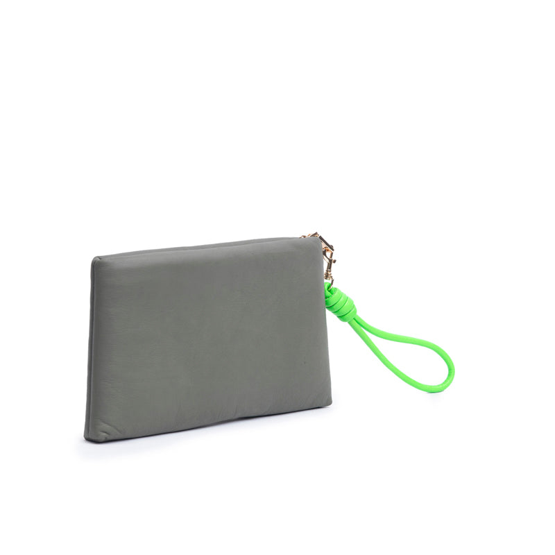 With just a touch of puff, a longer length to hold more essentials and a contrasting puffy wristlet so she never leaves your side.