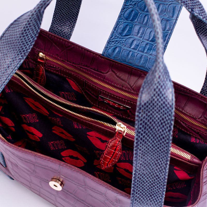 A statement bag in the making, this multitasking mix-master is where KTO2 Bespoke's signature croc-stamped leather meets sexy snake-print details.