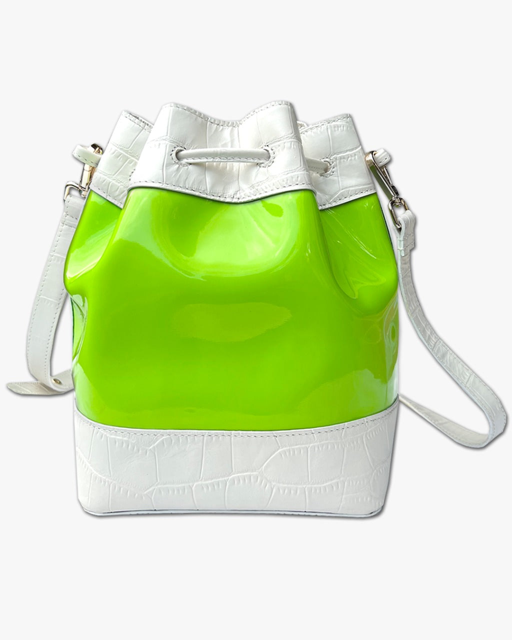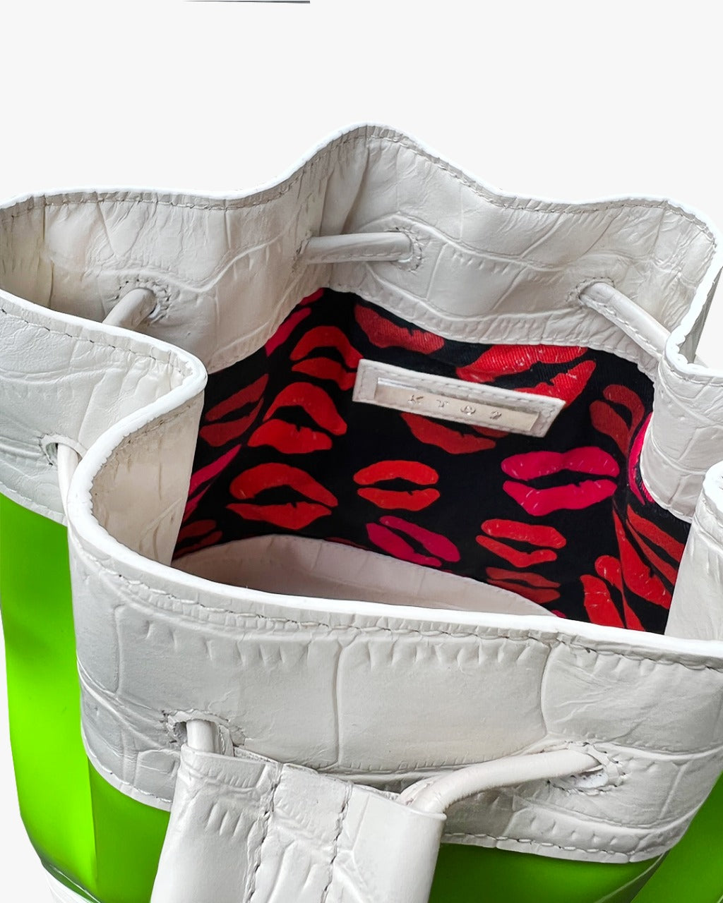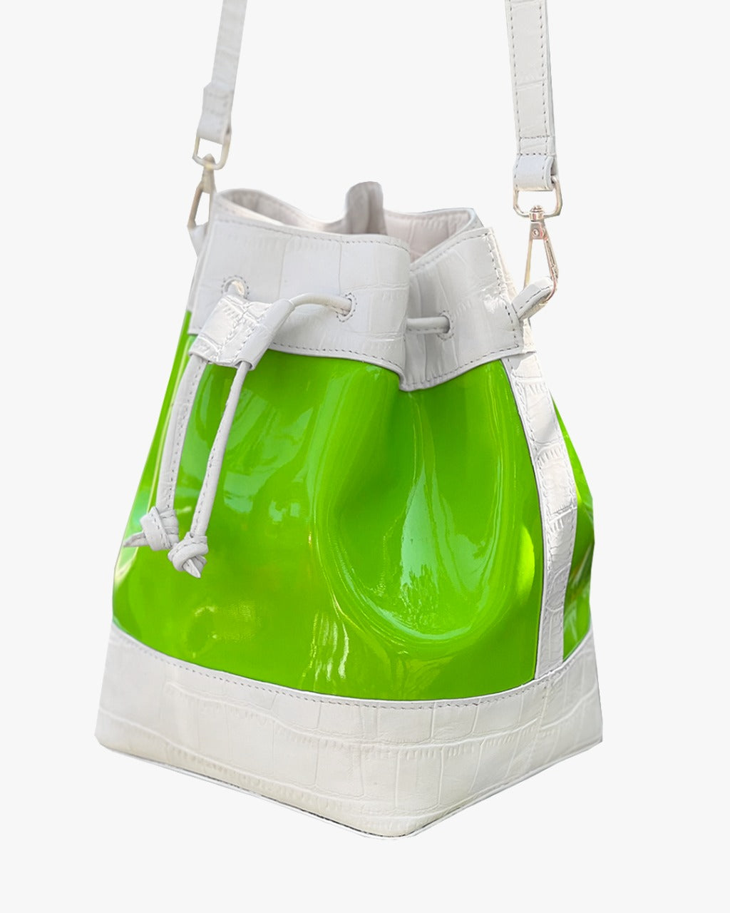 JELLY BUCKET BAG | WHITE & LIME GREEN