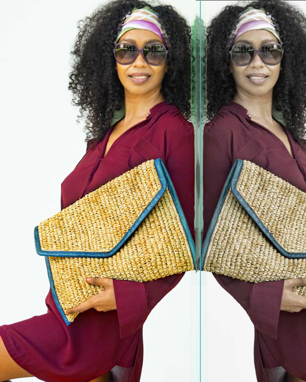 LADY RAFFIA ENVELOPE CLUTCH | BRIGHT BLUE