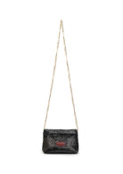 Disco Mini features a curvy flap closure, chain-link strap for cross-body or shoulder bag for versatile styling, or as a mini clutch that tucks neatly under the arm and offers just enough room for the essentials.