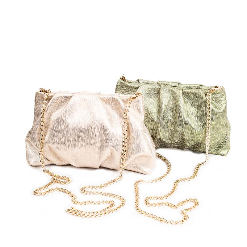 It's an elegant and textured bag that you will be reaching for again and again this holiday season. Carry it as a crossbody, shoulder bag or clutch.