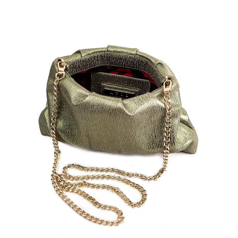 A bag of perfect contrasts, featuring origami folds providing structure yet softness.