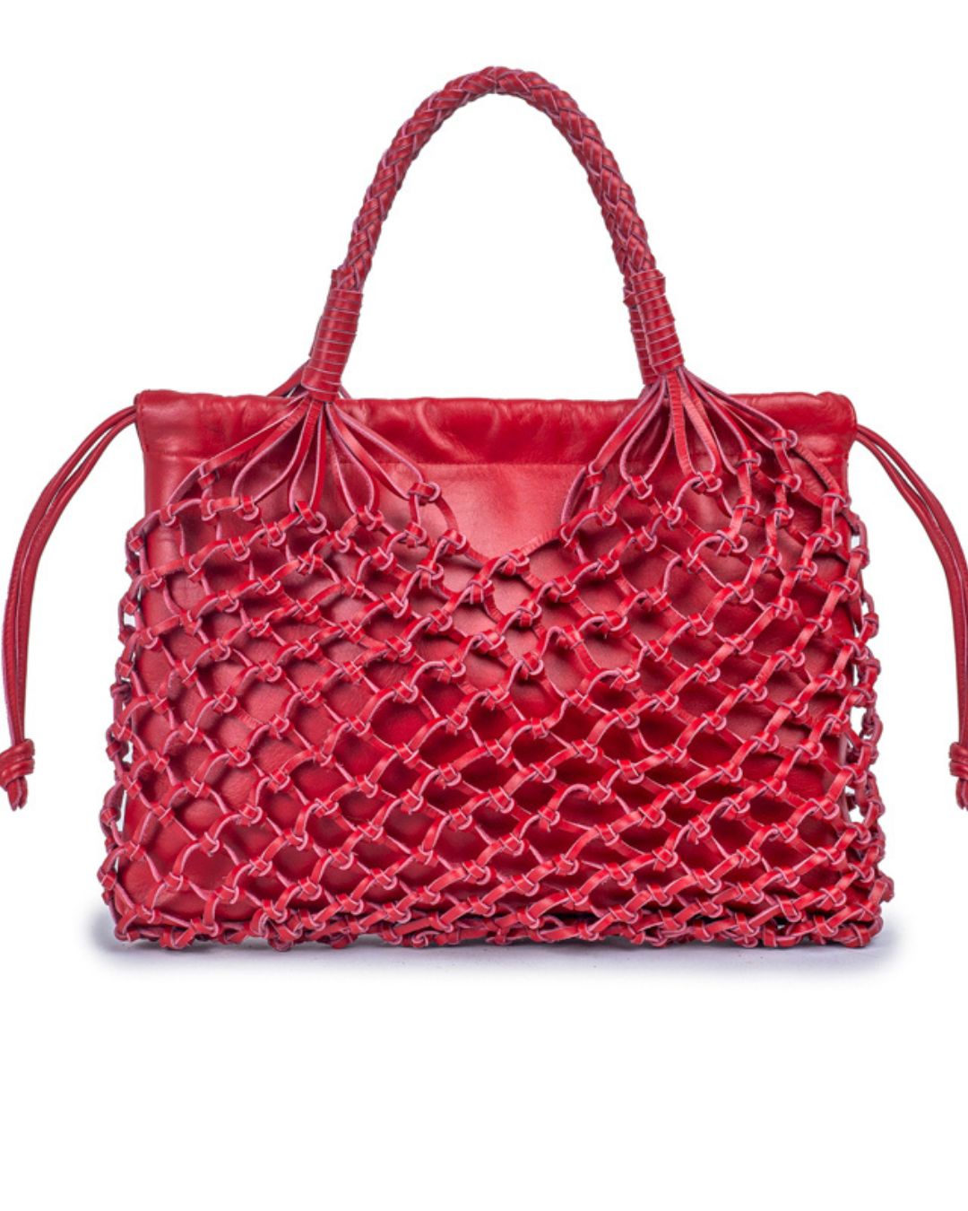 The drawstring leather insert keeps your essentials secure, while the thoughtfully designed wrapped shoulder straps provide comfortable carrying, whether nestled on your shoulder or swinging effortlessly at your side.