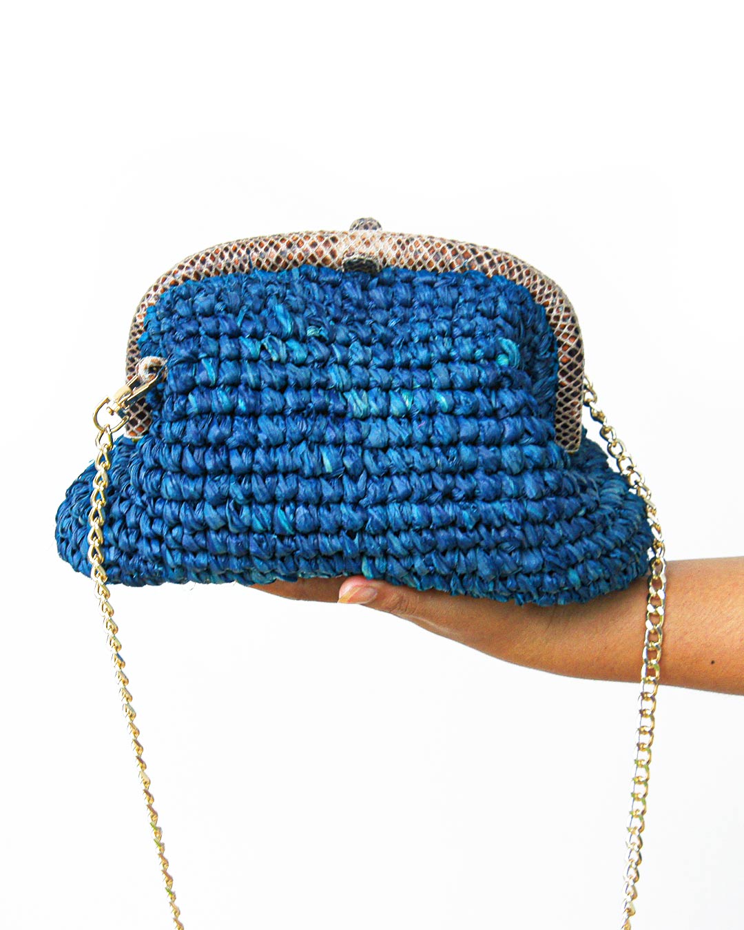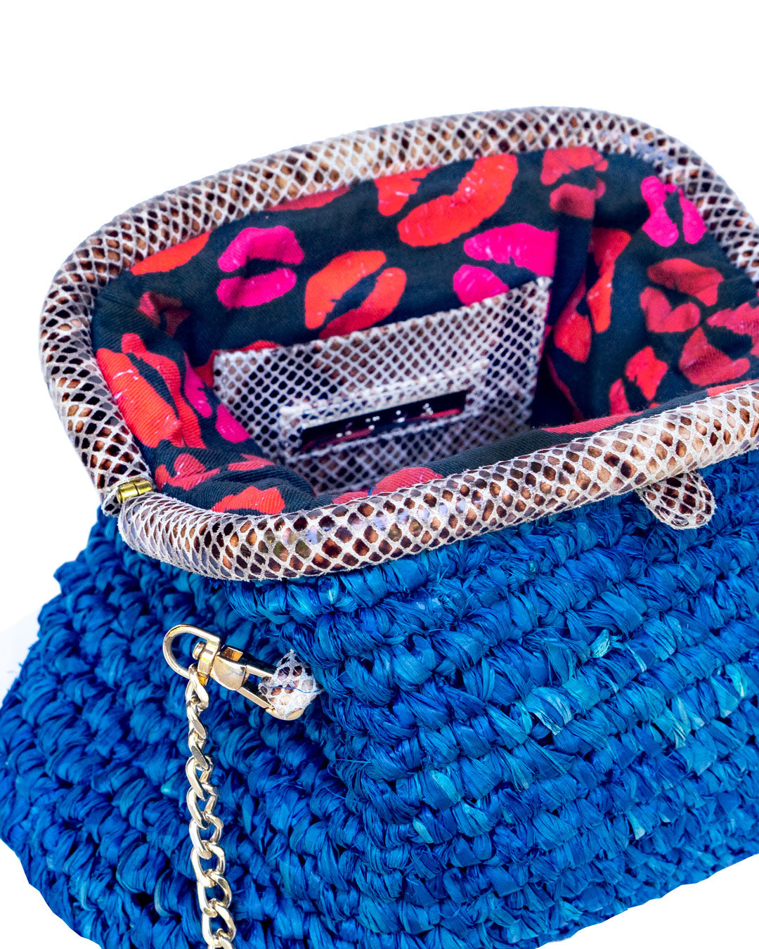 The removable crossbody chain strap keeps it close to your heart, but she's lightweight enough to hold as a clutch; roomy enough for all your goodies, with an inner pocket that allows you to stow your cards and, of course, we've trimmed her in our signature snake-print embossed leather, for the sophisticate in all of us.