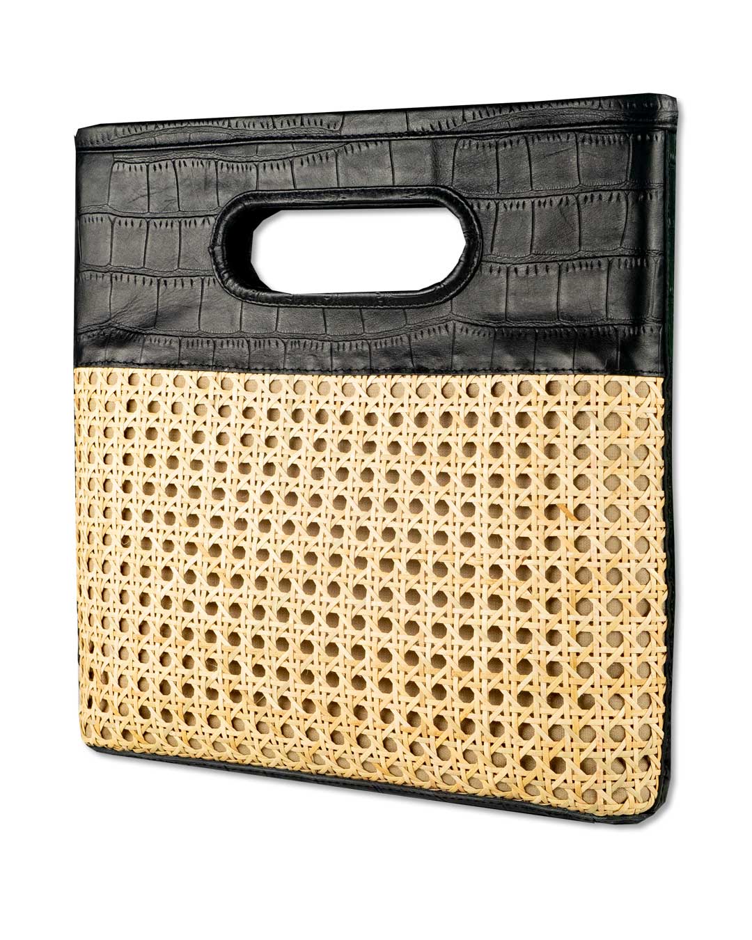 This handheld rattan stunner is sleek in its simple silhouette, but inside, it keeps it all together with two interior pockets and one zip pocket.