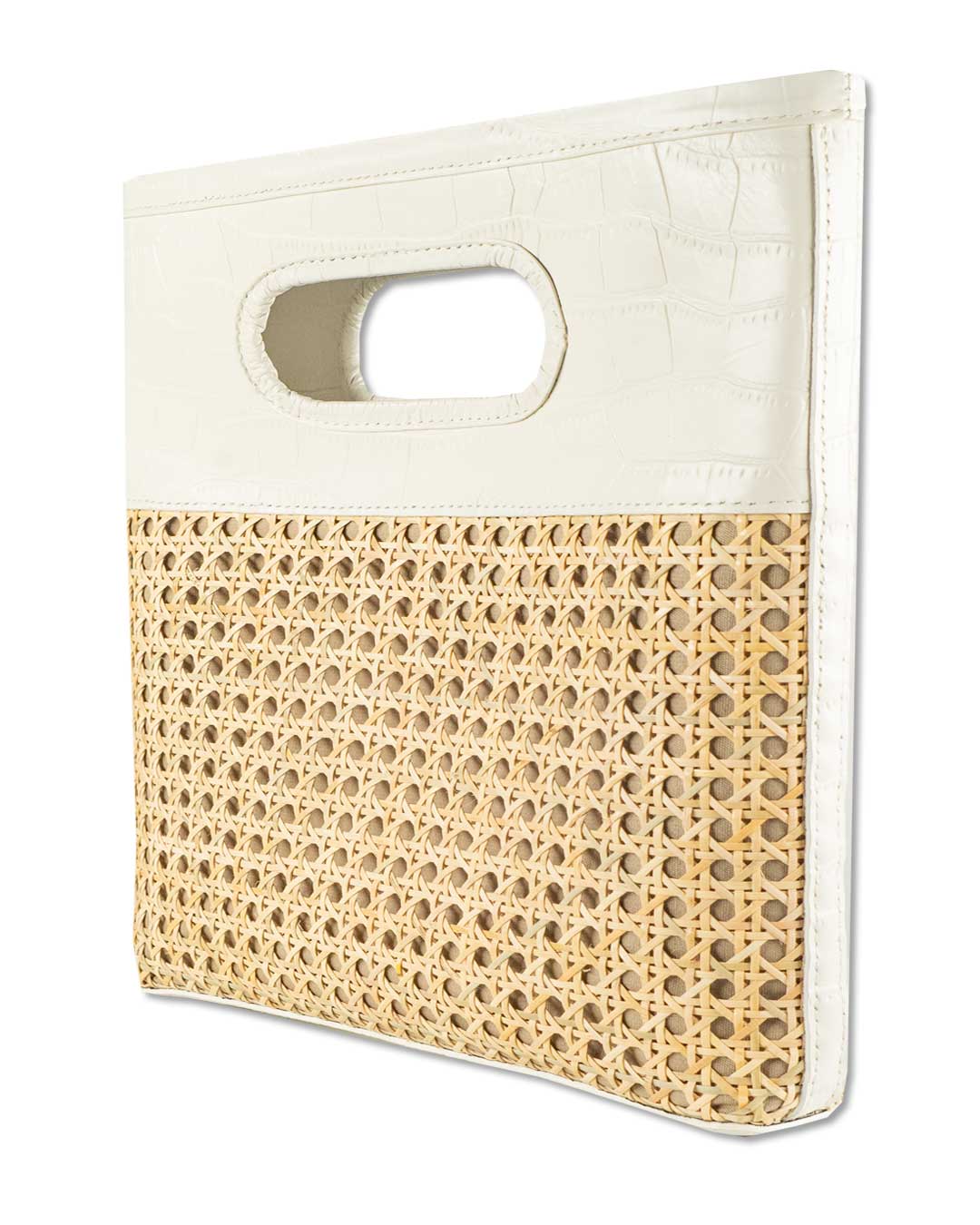 This handheld rattan stunner is sleek in its simple silhouette, but inside, it keeps it all together with two interior pockets and one zip pocket.