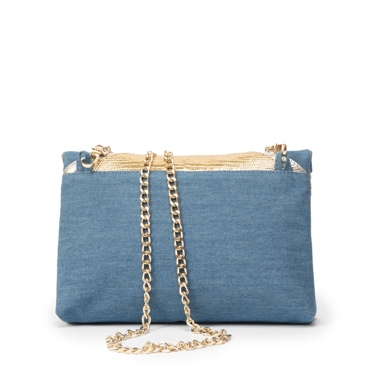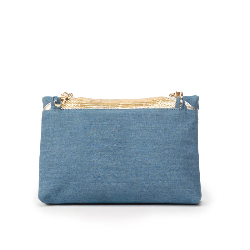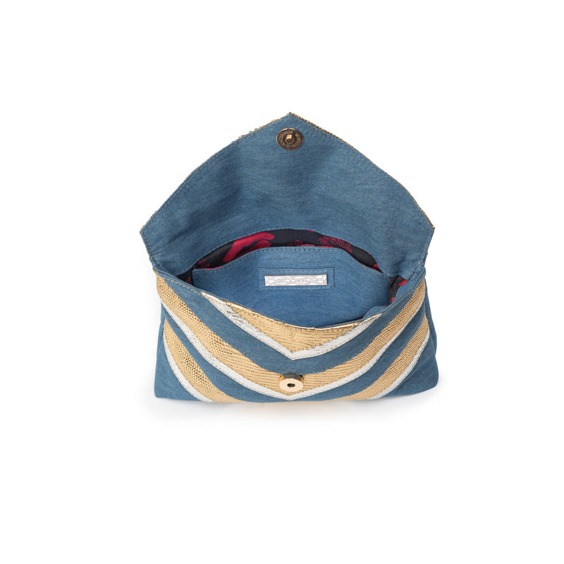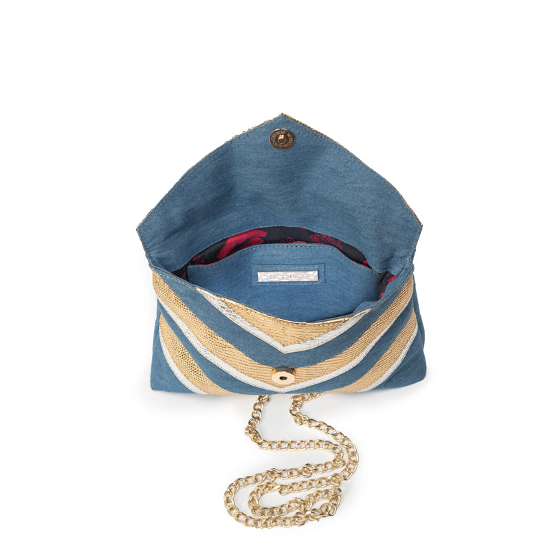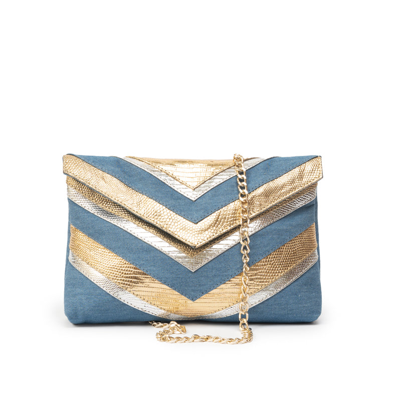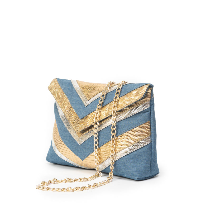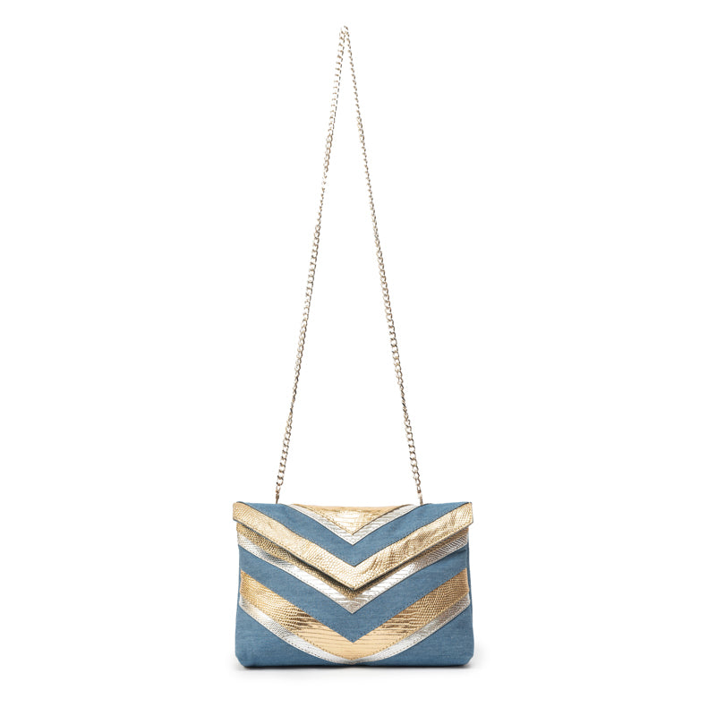 CHEVRON PUFF | DENIM, GOLD & SILVER